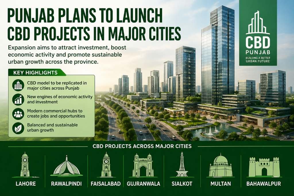 LAHORE, April 26 (ABC): The Punjab Central Business District Development Authority is planning to establish central business districts in major cities across the province, including Rawalpindi, Faisalabad, Gujranwala, Sialkot, Multan, and Bahawalpur. The move follows the successful launch of its flagship project in Lahore.